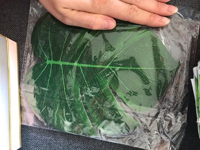 Entrega en 14 días. La hoja es un poco más grande que la mano de un adulto, mide aproximadamente 20cm de ancho y 22cm de alto.