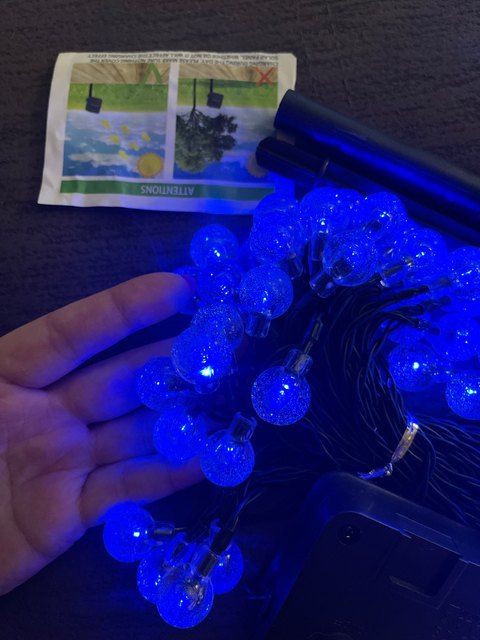 Laisser le produit pendant le jour dehors. Quand il fait sombre il commence à la lumière. Et c’est beau. JE suis vais commander encore cette fois en bleu.