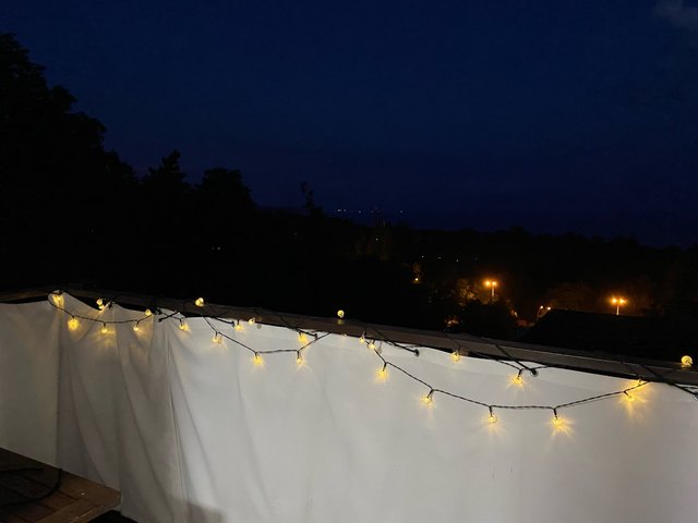 Super. Accroché au balcon sur la mer. Le câblage est collant bien sûr. Plusieurs modes. Voyons combien ça suffit.